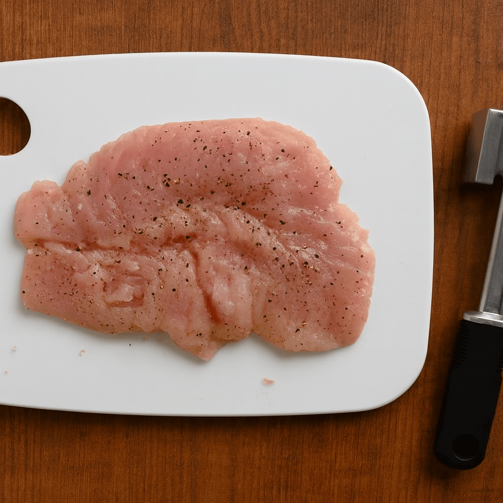 Put the turkey tenderloins on a cutting board. Cut each butterfly lengthwise, but not all the way through, so that they can be opened up like a book to expand the surface area. Cover each tenderloin with two sheets of plastic wrap. Use a pounder or meat mallet to flatten the tenderloin to a thickness of about 1/3 inch, then season it with salt and pepper.